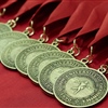 All students who achieved a perfect grade-point average received a bronze medallion on a crimson ribbon, which may be worn during graduation ceremonies.